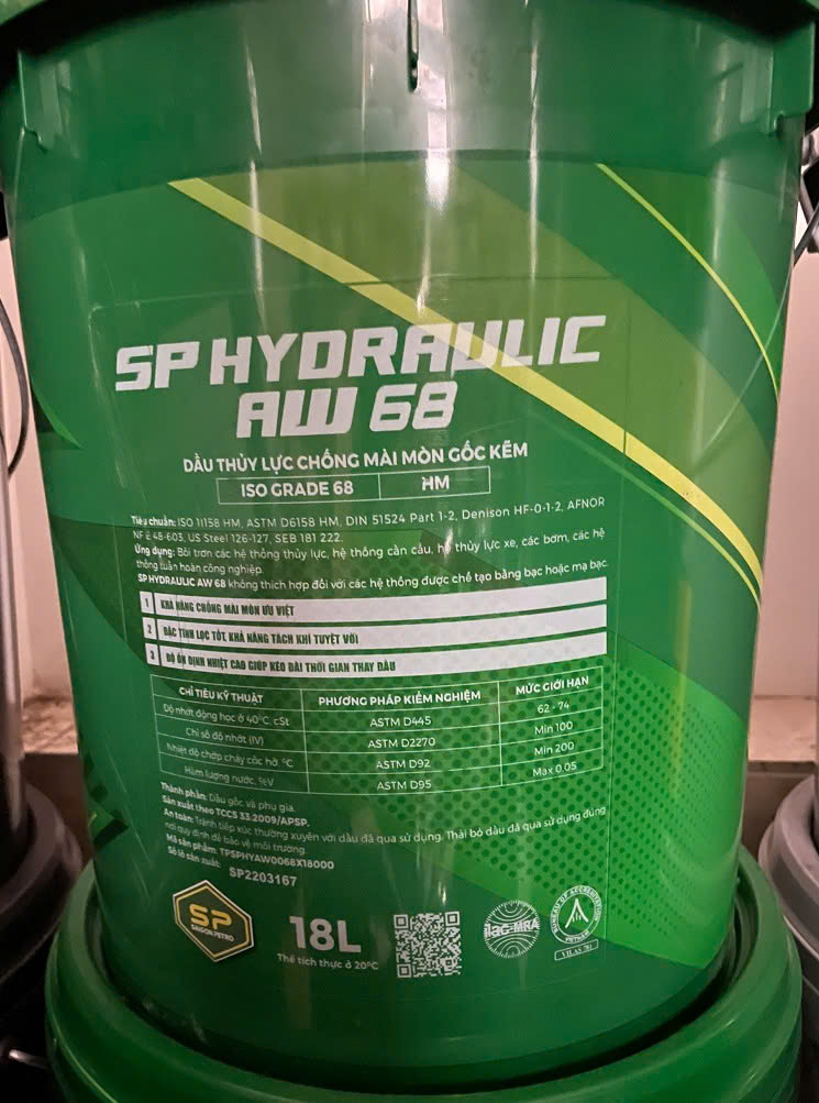 SP HYDRAULIC AW 68 là dầu thủy lực chống mài mòn đa dụng với chỉ số độ nhớt ISO VG 68, được sản xuất bởi Sài Gòn Petro, một trong những thương hiệu dầu nhớt uy tín hàng đầu. Sản phẩm này được pha chế từ dầu gốc parafin cao cấp, kết hợp cùng công nghệ phụ gia kẽm (ZDDP) tiên tiến và các chất phụ gia chất lượng cao giúp chống mài mòn, chống gỉ sét, và chống ô xi hóa hiệu quả. SP HYDRAULIC AW 68 được thiết kế chuyên dụng để bôi trơn và bảo vệ hệ thống thủy lực của các loại máy móc trong ngành công nghiệp. Nó đặc biệt phù hợp cho hầu hết các hệ thống thủy lực như hệ thống cần cẩu, ben, hệ thủy lực xe, bơm, và các hệ thống tuần hoàn công nghiệp.